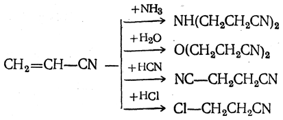 Акрилонитрил легко вступает в химические реакции, получившие название реакций цианэтилирования, например: