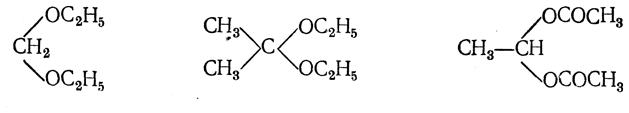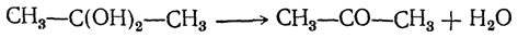 Еще менее прочны другие двухатомные спирты, у которых оба гидроксила находятся при одном и том же атоме углерода. В момент образования они также выделяют воду, превращаясь в соответствующие альдегиды или кетоны, например: