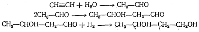 1,3-Бутиленгликоль получали в Германии из ацетилена через уксусный альдегид: