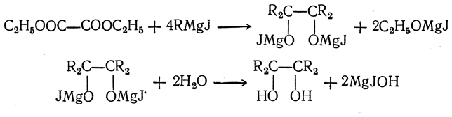 Кроме того, пинаконы могут быть получены действием магнийорганических соединений на эфиры щавелевой кислоты: