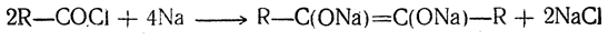 Казалось бы, α-дикетоны должны получаться действием металлов на галоидангидриды кислот, например: