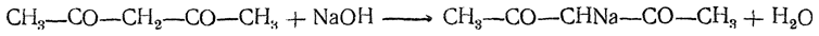 Наиболее характерным свойством β-дикетонов является способность атомов водорода, связанных с атомом углерода, находящимся между двумя карбонильными группами, замещаться на металлы. Это замещение может происходить при растворении β-дикетонов в растворах щелочей: