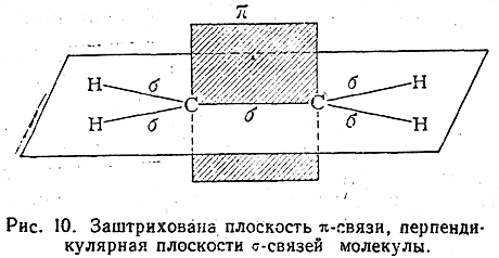 Строение молекулы этилена может быть также схематически представлено, как показано на рис. 10.