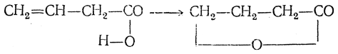 Лактоны получаются также при кипячении с разбавленной серной кислотой ненасыщенных кислот, содержащих этиленовую связь в β,γ- или в γ,δ-положениях. При этом происходит присоединение карбоксильного гидроксила по месту этиленовой связи, например: