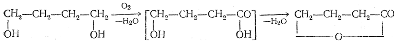При неполном окислении 1,4-гликолей также могут получаться лактоны, например бутиролактон из бутандиола-1,4. По-видимому, возникающая при окислении γ-оксимасляная кислота в момент образования теряет воду и дает лактон: