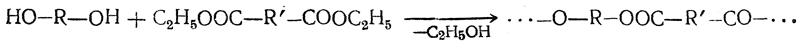 Группировка —О—R—О—ОС—R'—СО— представляет собой повторяющееся звено полимерного продукта — полиэфира.