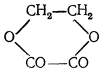 с т. пл. 143° С. Однако кристаллы при хранении быстро превращаются в белый порошок, представляющий собой уже смесь полимеров и циклического эфира. Обработкой растворителями продукт можно разделить на две фракции. Более легкорастворимая фракция плавится при 159°С и имеет средний молекулярный вес около 3000; другая фракция, плавящаяся при 173° С, имеет значительно больший молекулярный вес. Эти продукты нестойки и при хранении вновь превращаются частью друг в друга, а частью в исходный мономер.