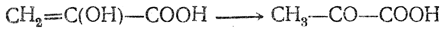 является процессом обратимым (кето-енольная таутомерия), во многих случаях эфиры ненасыщенных оксикислот с гидроксилом при двойной связи удалось выделить в чистом виде.