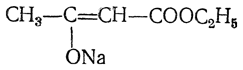 явствует из результатов исследований (А. Н. Несмеянов и сотр.) натриевых, литиевых и магниевых енолятов дифенилпропиомезитилена — соединения, вполне аналогичного ацетоуксусному эфиру. Этот енолят имеет следующее строение (пунктиром выделена часть молекулы, имеющаяся и в натрийацетоуксусном эфире):
