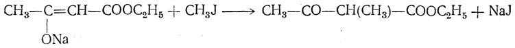 Однозамещенные гомологи ацетоуксусного эфира могут заменять еще один атом водорода на натрий, и с ними могут быть произведены дальнейшие синтезы: