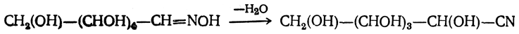 Наконец, оксимы гексоз при действии уксусного ангидрида могут отщеплять молекулу воды, образуя нитрилы глюконовых кислот: