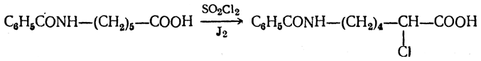Действием хлористого сульфурила в присутствии следов иода вводят в α-положение атом хлора: