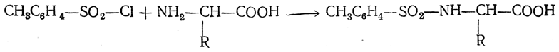 2. Образование N-п-толуолсульфопроизводн ы х. п-Толуолсульфопроизводные получаются в результате действия на аминокислоту п-толуолсульфохлорида в щелочной среде: