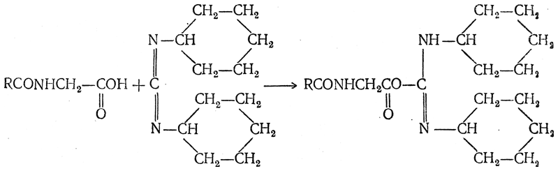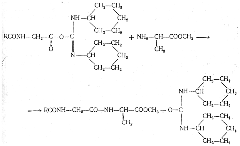 По-видимому, при взаимодействии дициклсгексилкарбодиимида с N-замещенной аминокислотой (или пептидом) сначала образуется О-ацилированная дициклогексилизомочевина
