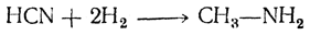 Синильная кислота обладает сильной склонностью к реакциям присоединения (присоединяет хлористый водород, сероводород, сернистую кислоту и т. д.). При восстановлении дает метиламин: