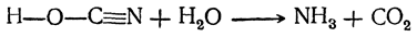 При действии кислот на соли циановой кислоты не удается получить саму кислоту, так как в этих условиях она немедленно присоединяет воду и распадается на аммиак и углекислый газ: