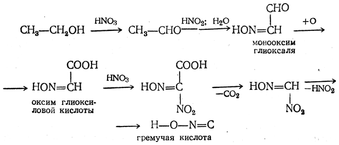 Механизм образования гремучей кислоты может быть представлен следующей схемой (Виланд):