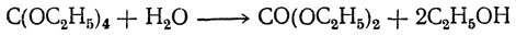 Обыкновенный (этиловый) ортоугольный эфир кипит при 158° С с небольшим разложением. С водой в присутствии кислоты он дает средний угольный эфир и спирт: