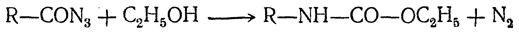 Замешенные уретаны могут получаться также при кипячении со спиртами азидов кислот: