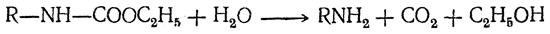 Омыление замещенных уретанов приводит к образованию аминов; при помощи этой реакции можно получать первичные амины из органических кислот (Курциус):
