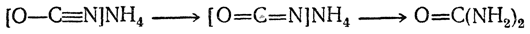 Уокер и Гембли (1895) показали, что в водном растворе изомеризация циановокислого аммония в мочевину является обратимой реакцией, причем равновесие