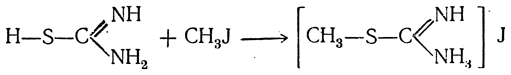 В то время как мочевина при большинстве реакций реагирует в амидной форме (а не в форме изомочевины), большая часть реакций тиомочевины отвечает имидоалкогольной форме изотиомочевины. Так, при действии на тиомочезину иодистого метила образуется соединение, содержащее метил, связанный с серой: