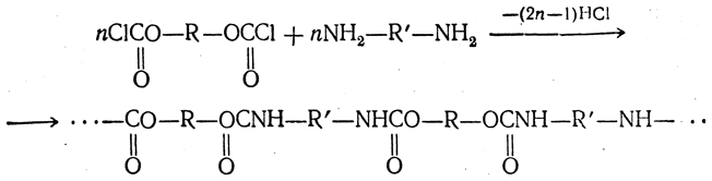 Поликонденсация дихлоругольных эфиров гликолей с диаминами также приводит к образованию полиуретанов: