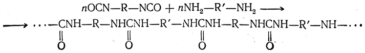 Если на диизоцианаты действовать не двухатомными спиртами, как при получении полиуретанов (см. выше), а диаминами, то получаются высокомолекулярные полимочевины, являющиеся полиамидами угольной кислоты: