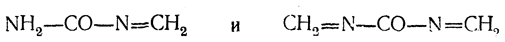При осторожном проведении конденсации мочевины с формальдегидом в присутствии щелочей сначала образуются, в зависимости от взятого соотношения компонентов, два мономерных кристаллических продукта: монометилолмочевина NH2—CO—NH—СН2ОН (т. пл. 110° С) и диметилолмочевина НОСН2—NH—СО—NH—СН2ОН (т. пл. 125°С). При дальнейшем нагревании метилольные производные, отщепляя элементы воды, превращаются, особенно легко в кислой среде, в ненасыщенные метилен- и диметиленмочевину