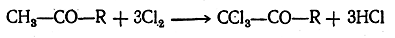 Трехзамещенные галоидные производные метана можно получить действием галоида и щелочи из очень большого числа органических веществ, в молекуле которых радикал метил связан с атомом углерода, соединенным с кислородным атомом, например из соединений типов: