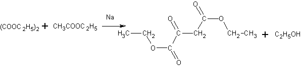 Реакцию проводят в круглодонной колбе с обратным холодильником и капельной воронкой. В круглодонную колбу емкостью 250 мл помещают 80 мл абсолютного эфира и вносят тонко нарезанный металлический натрий (24 г), очищенный от корки окислов. Прибавляют диэтилоксалат (15 г) и затем через капельную воронку медленно, по каплям, приливают хорошо высушенный уксусноэтиловый эфир (10,8 г); реакция начинается сама собой. После того как весь уксусноэтиловый эфир прибавлен, реакционную смесь нагревают на водяной бане при 30 С до тех пор, пока весь натрий не растворится (на что требуется около 1,5 часа), и оставляют стоять в течение ночи. На другой день выделившийся в виде желтой массы натрий-щавелевоуксусный эфир отсасывают на воронке Бюхнера и промывают небольшим количеством сухого эфира. Затем смешивают натрийщавелевоуксусный эфир с небольшим количеством воды, прибавляют несколько кусочков льда и подкисляют 10%-ным раствором серной кислоты. Раствор переливают в делительную воронку и 4 раза извлекают эфиром, беря в первый раз 25 мл эфира и затем 3 раза по 15 мл. Соединенные эфирные вытяжки промывают 5 мл 10%-ного раствора углекислого натрия, затем два раза водой (10 и 5 мл) и сушат хлористым кальцием. Высушенный раствор фильтруют через небольшой складчатый фильтр, переливают в колбу Кляйзена и отгоняют эфир на водяной бане. Оставшийся в колбе щавелевоуксусный эфир перегоняют в вакууме.