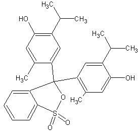 В зависимости от pH окраска растворов меняется: в щелочной среде - синяя, в нейтральной - желтая, в кислой - малиново-красная (на фото).Брутто-формула (система Хилла): C27H30O5S