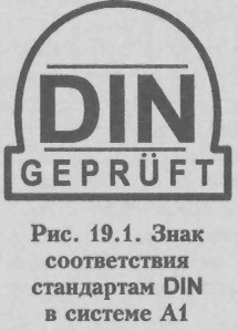 бежные организации, заинтересованные в сертификации своей продукции. Непосредственные работы по сертификации в этой системе осуществляет Общество по оценке соответствия DIN CERTCO, которое участвует в нескольких соглашениях по сертификации в рамках ЕС и сотрудничает с международными организациями. Изделия, испытанные на соответствие требованиям стандартов DIN, маркируются знаком DIN GEPRUFT ("испытано на соответствие требованиям DIN"), рис. 19.1. Использование знака сопровождается инспекционным контролем.