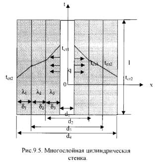 Допустим цилиндрическая стенка состоит из трех плотно прилегающих слоев (Рис.9.5).