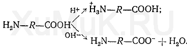 Аминокислоты являются амфотерными соединениями. Диссоциация их на ионы зависит от рН среды. В кислой среде аминокислоты диссоциируют как основания, в щелочной — как кислоты: