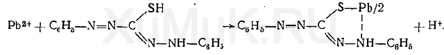 Выделение ионов свинца из минерализата. К раствору, содержащему ацетат свинца, прибавляют хлороформный раствор дитизона и взбалтывают. При этом образуется однозамещенный дитизонат свинца Pb(HDz) 2, хлороформный раствор которого имеет оранжево-красную окраску: