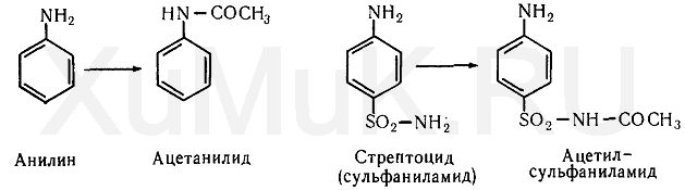 Ниже приводятся продукты ацетилирования (конъюгаты) анилина и стрептоцида