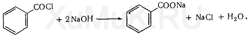 Распознаванию запаха этилбензоата мешает избыток бензоилхлорида, имеющего неприятный запах. Поэтому для разложения избытка бензоилхлорида прибавляют раствор щелочи: