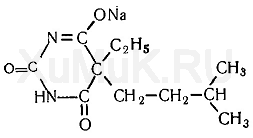 Метаболизм. Часть барбамила выделяется из организма с мочой в неизмененном виде. Около 45 % барбамила подвергается различным превращениям. В качестве метаболита барбамила является 5-этил-5-(3-гидрокси-3-метилбутил)-барбитуровая кислота, которая выделяется с мочой. В моче обнаружено еще 2 метаболита барбамила, состав которых не установлен.