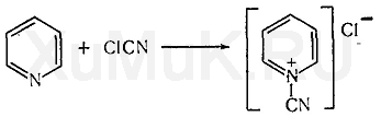 Описанный ниже метод фотоколориметрического определения анабазина базируется на реакции Кенига, который установил, что при взаимодействии пиридина и его производных, имеющих свободные α- и α'-положения, с хлорцианом или бромцианом образуется хлорид или бромид цианпиридиния: