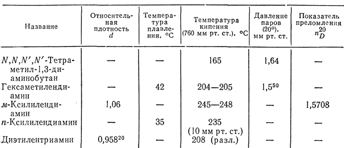 Физические и химические свойства. Низшие амины хорошо растворяются в воде; с повышением молекулярной массы растворимость в воде падает. Амины обладают аммиачным запахом и характеризуются основными свойствами. Образуют соли с минеральными и органическими кислотами. Весьма реакционноспособны. См. также таблицу на стр. 219.