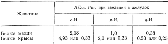Токсическое действие. Животные. При остром отравлении в первые часы резкое возбуждение, затем вялость. На 2—3 сутки расстройство дыхания по типу Чейн-Стокса, особенно в случае м-нитрофенола. На вскрытии — полнокровие внутренних органов. Ниже приводятся токсические дозы (по данным Махини; Василенко, Володченко):