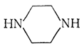 Физические и химические свойства. Бесцветные гигроскопические кристаллы. Т. плавл. 104°, т. кип. 145—146°. Раств. в воде 15% (20°), хорошо растворим в спирте. Сильное органическое основание. Пиперазин адипинат — белый порошок.